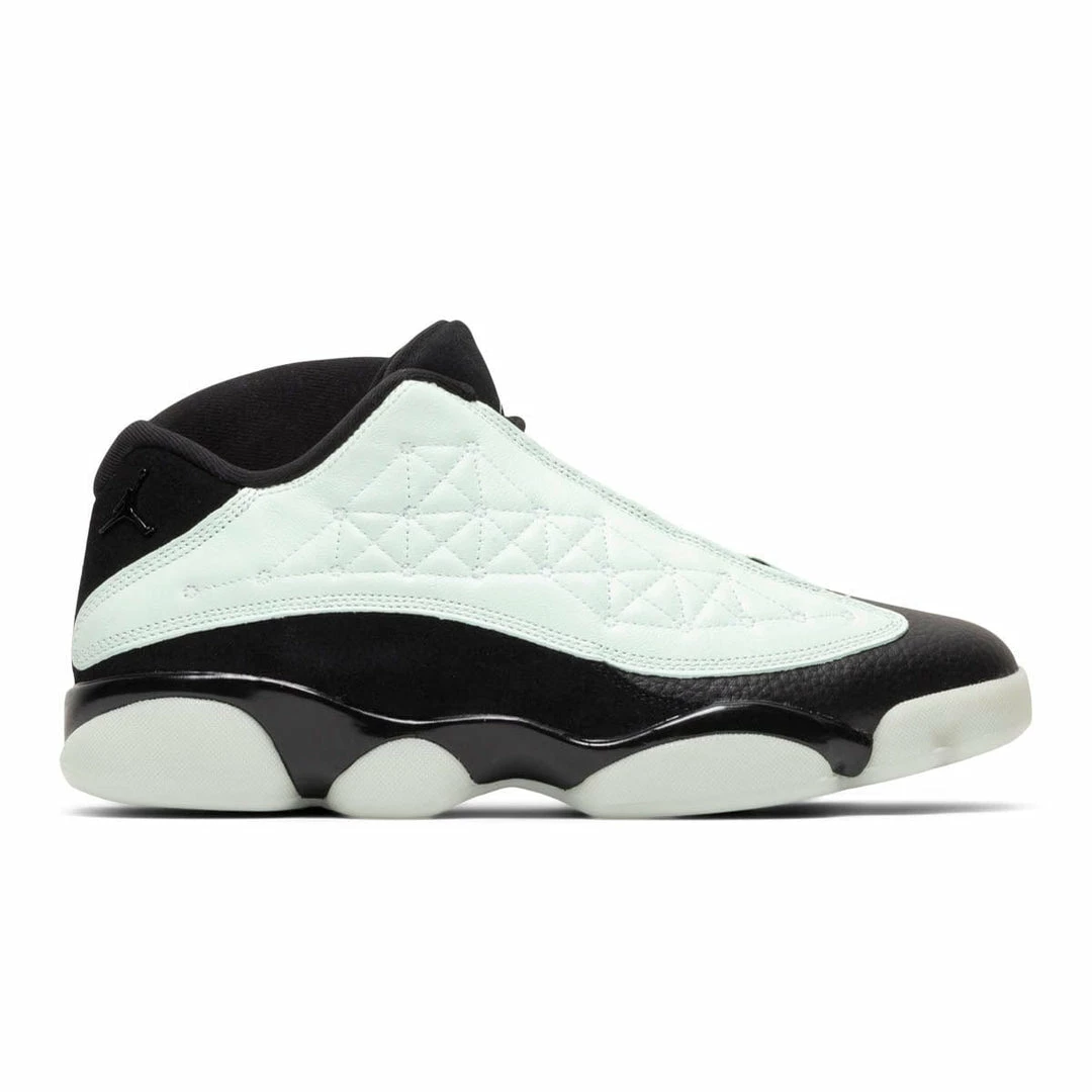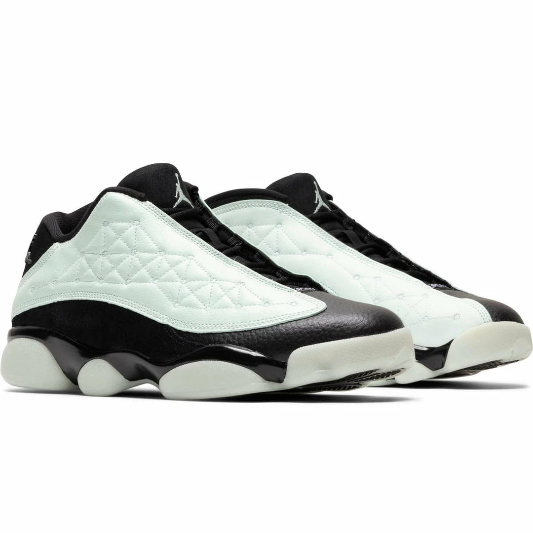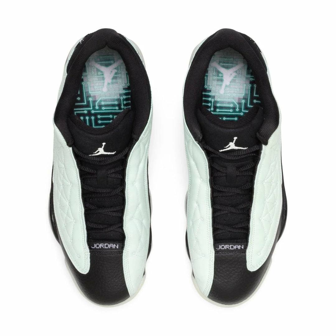 The Air Jordan 13 Retro Low steps out in a “Singles Day” colorway in which theΒ light greenΒ leather upper does all the talking. It features a black leather toe box and black nubuck on the heel and collar.Β