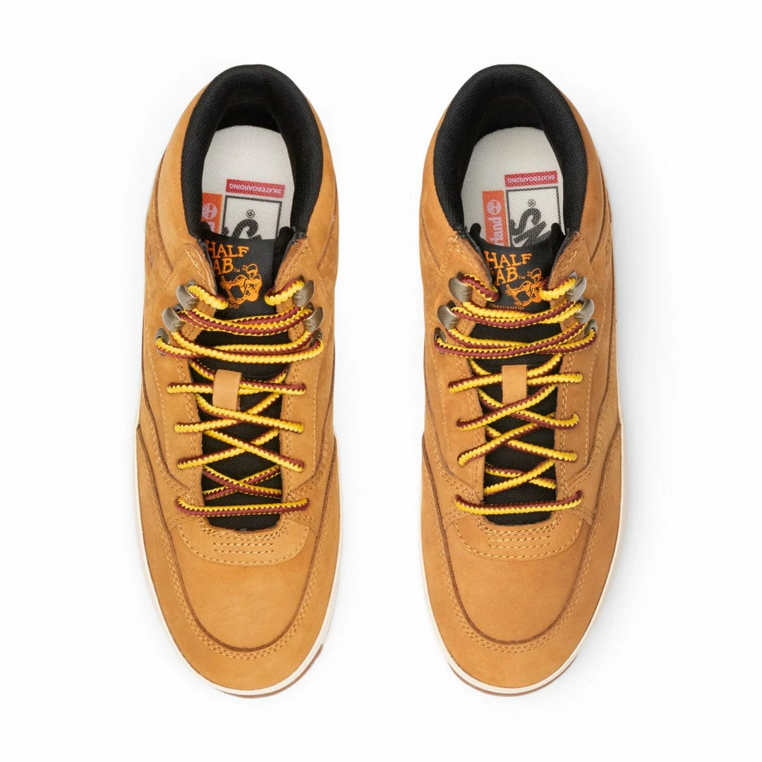 For the first time in history Vans and Timberland are finally joining forces for a collaborative capsule. Celebrating the 30th anniversary of the iconic Half- Cab, the footwear titans have come together for an entirely new hybrid silhouette thatβs half skate shoe and half hiking boot, dubbed the Vans Skateboarding x Timberland Half Cab Hiker.