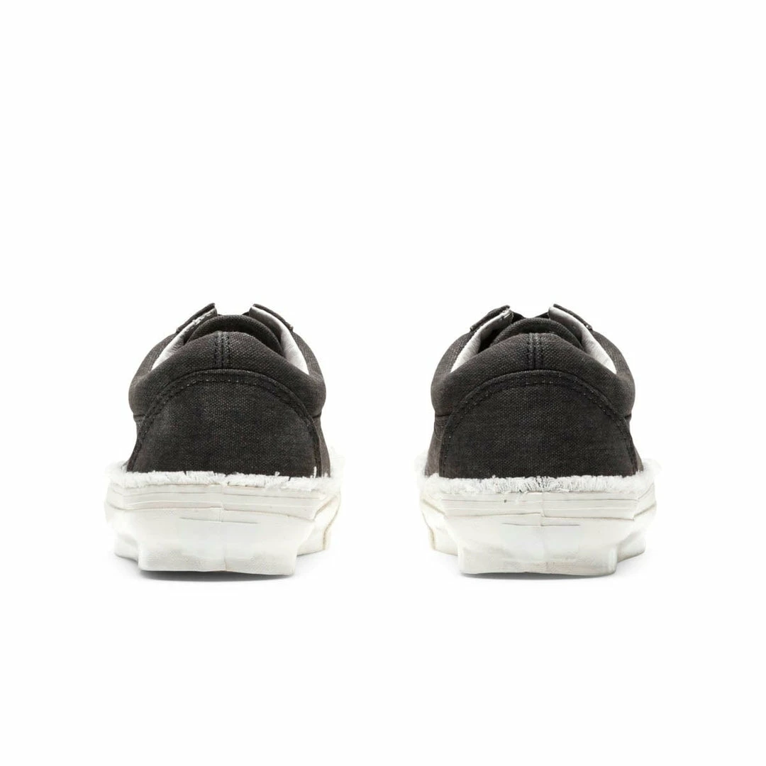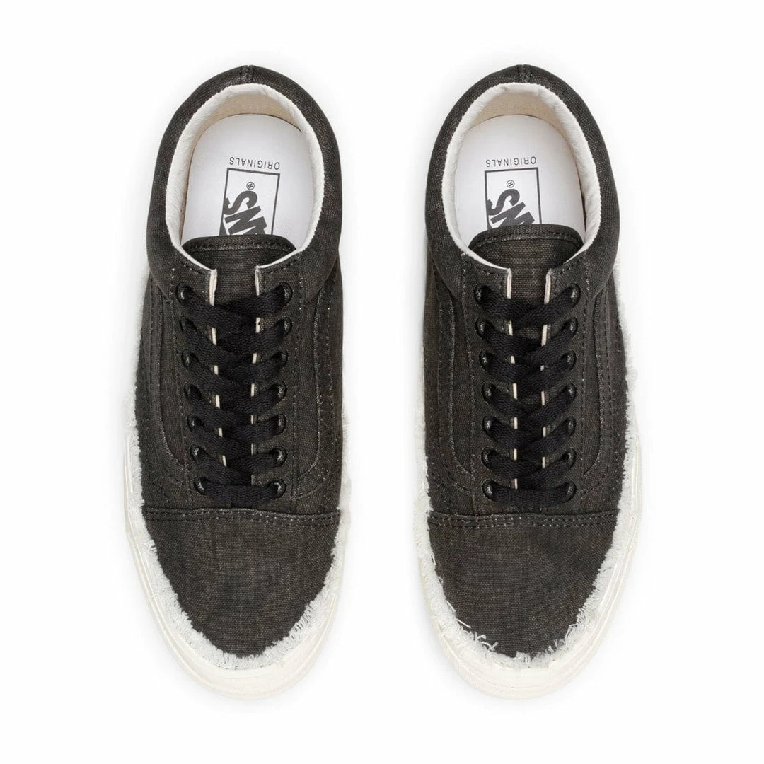 - White rubber foxing is outlined with frayed canvas detail